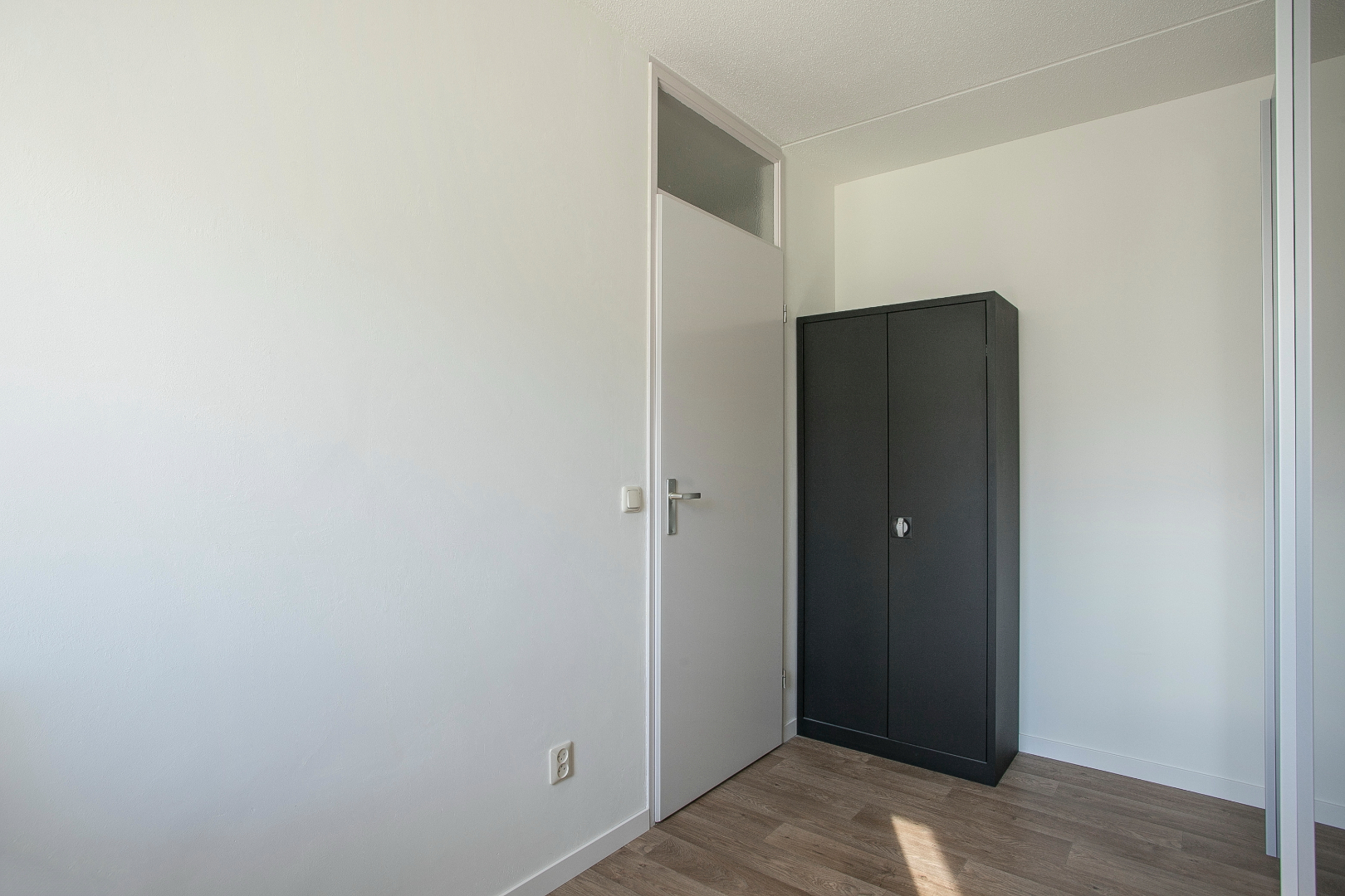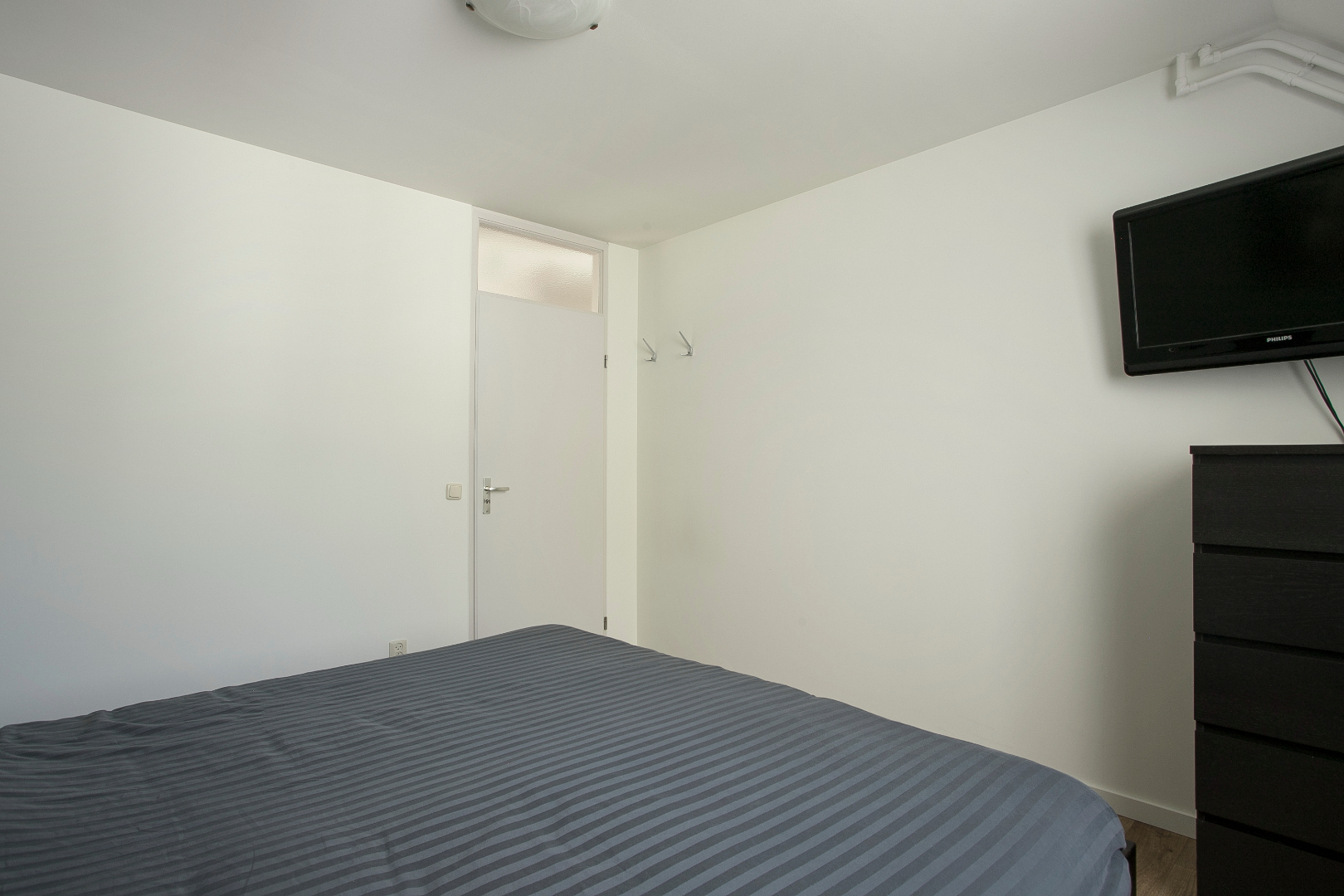 De tweede slaapkamer is aan de voorzijde gelegen en heeft een vinyl vloer en een hor in de openslaande raam. Internet aansluiting is aanwezig.