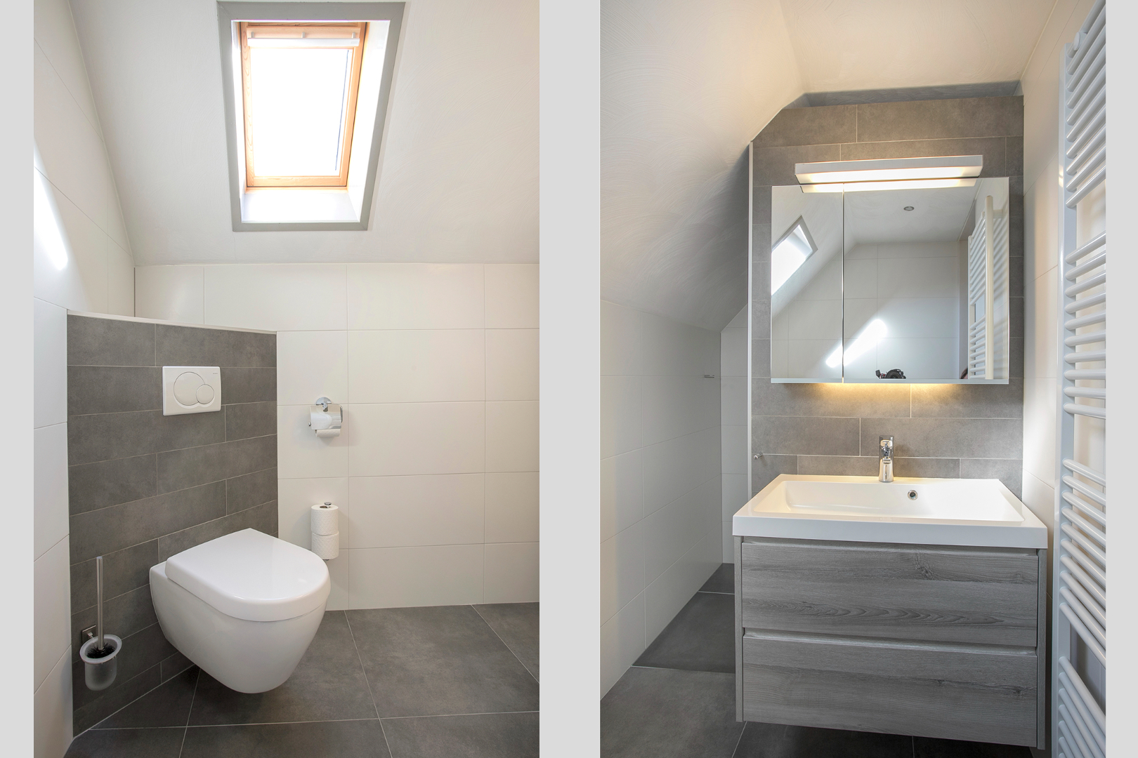 De badkamer is gemoderniseerd met o.a. mooie wand- en vloertegels, inloopdouche, designradiator en wandcloset.
