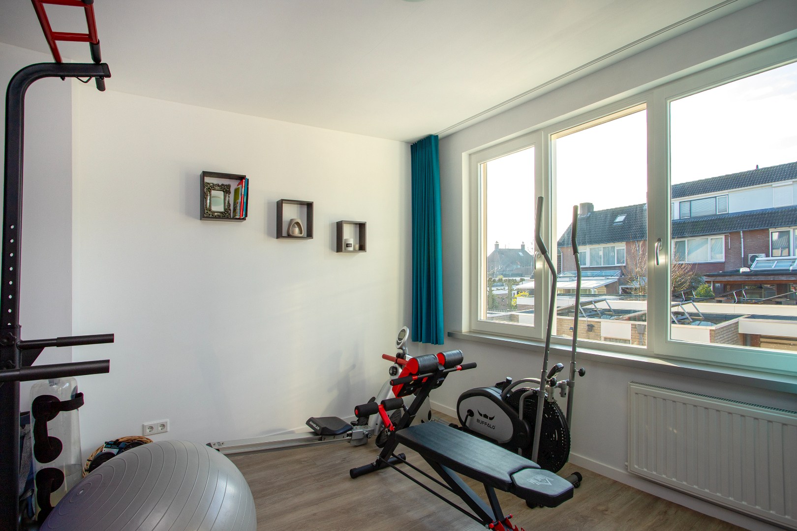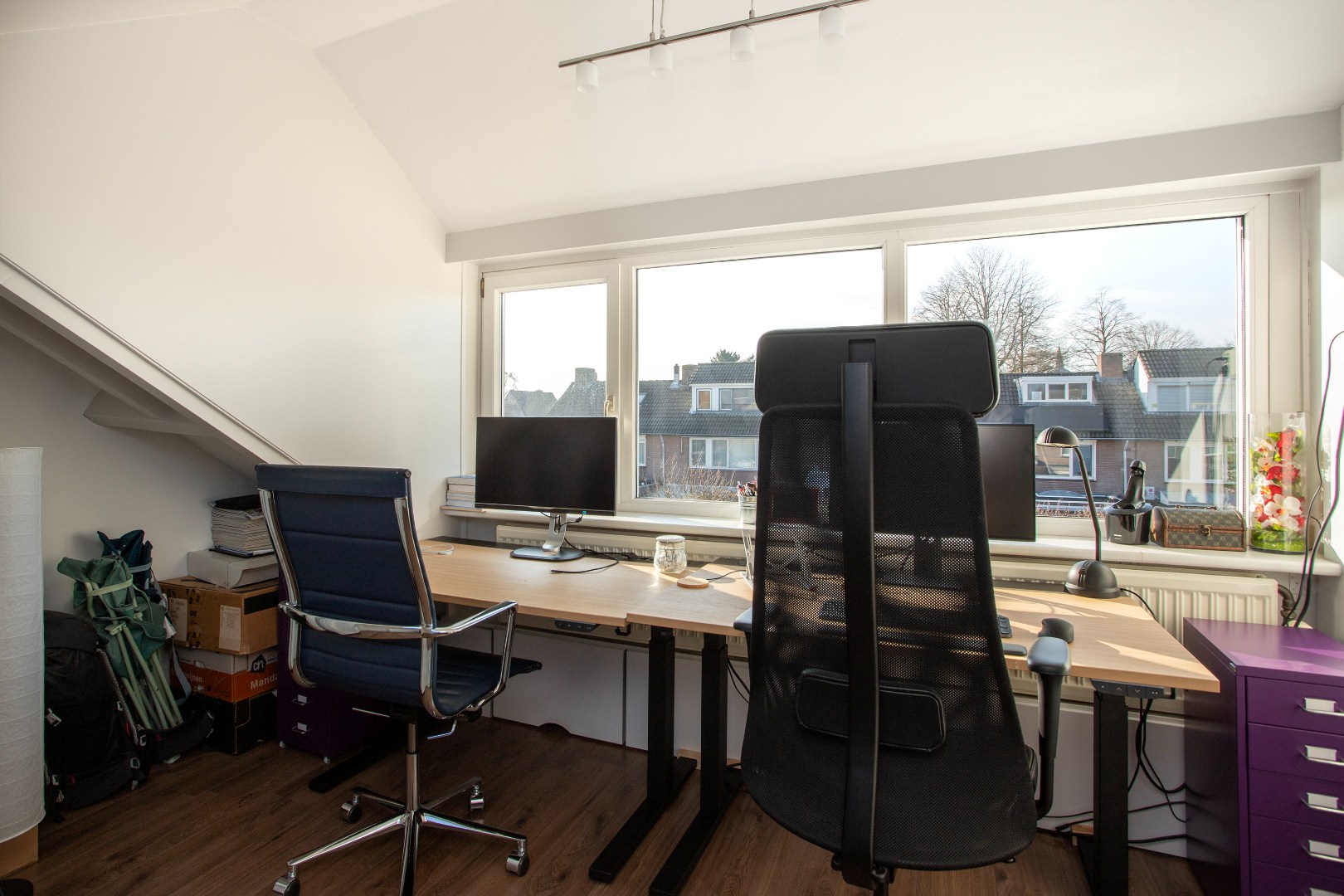 Op de zolderkamer tref je een grote (slaap) kamer aan met veel ruimte mede door de brede dakkapel met draai-kiep raam en rolluik.