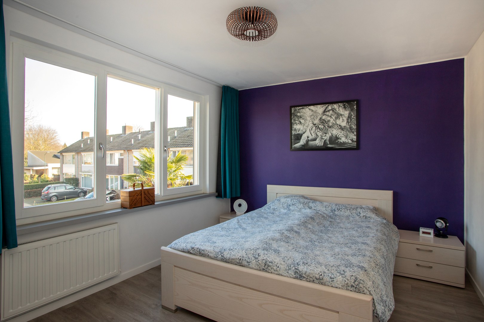 De slaapkamer aan de achterzijde is qua uitvoering een kopie van de ouderslaapkamer.