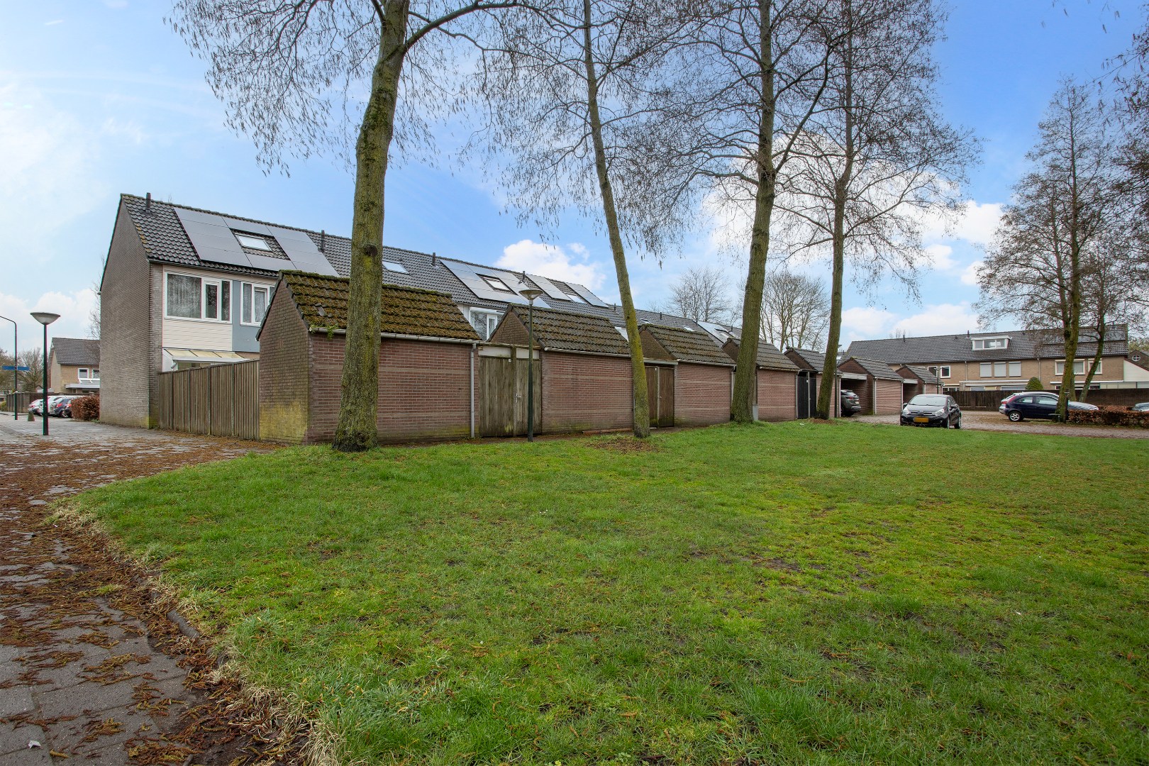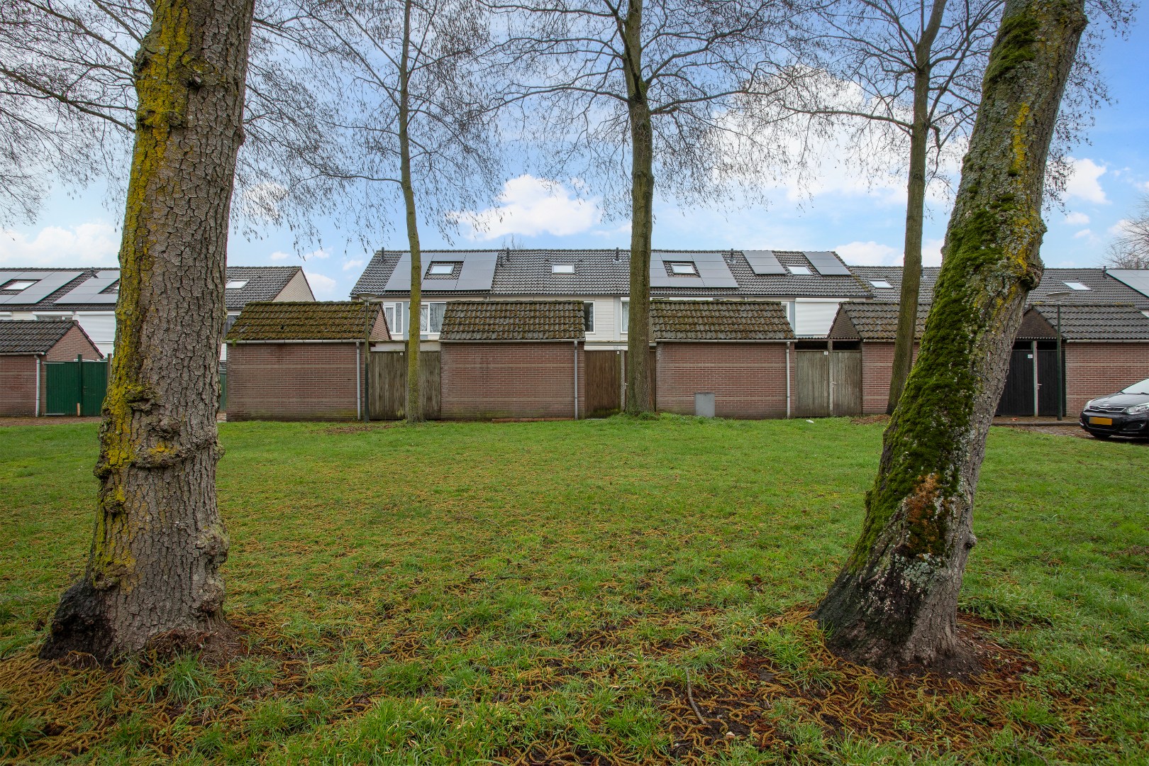De vrije achterom geeft toegang tot een speelveldje en veel parkeerplaatsen.