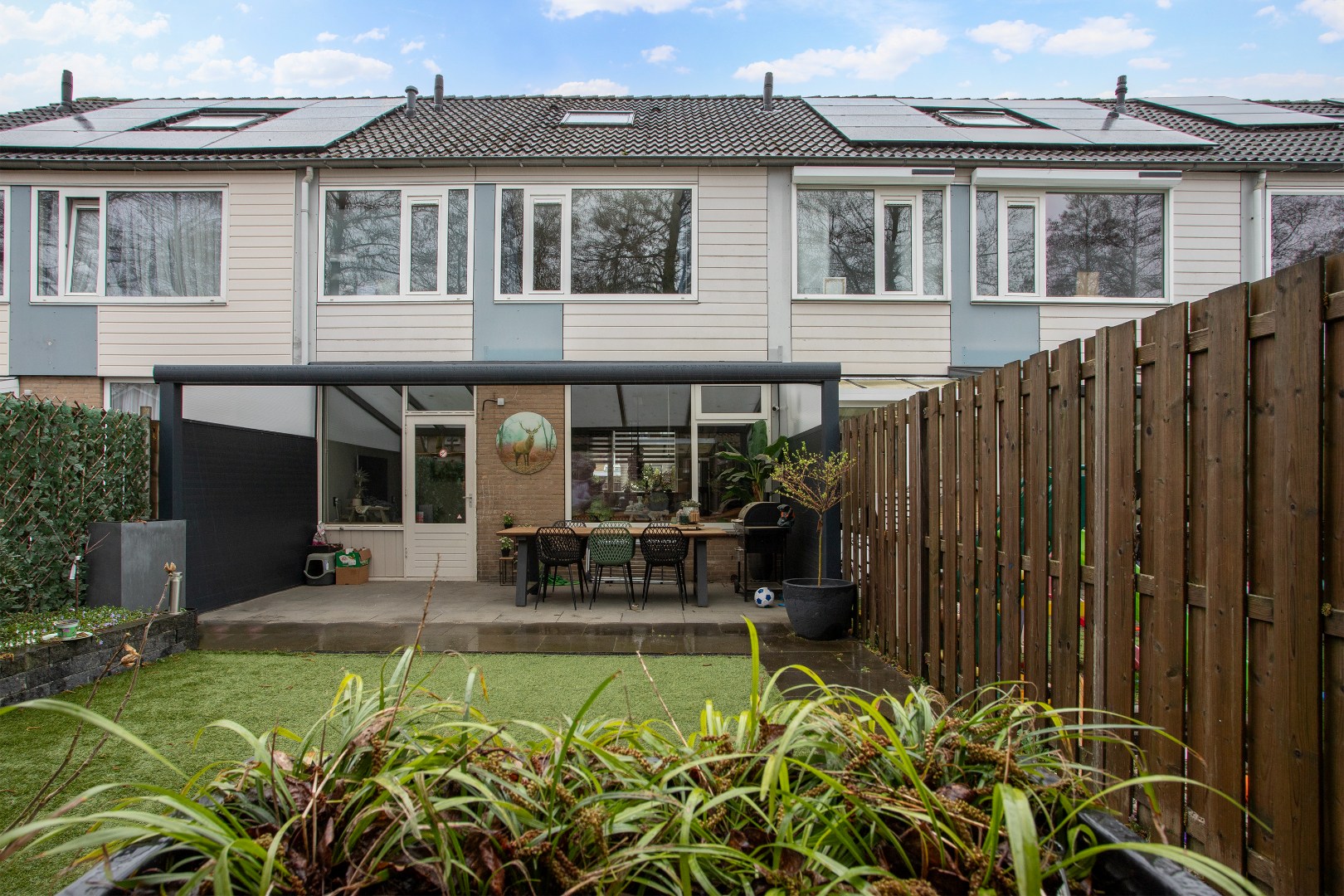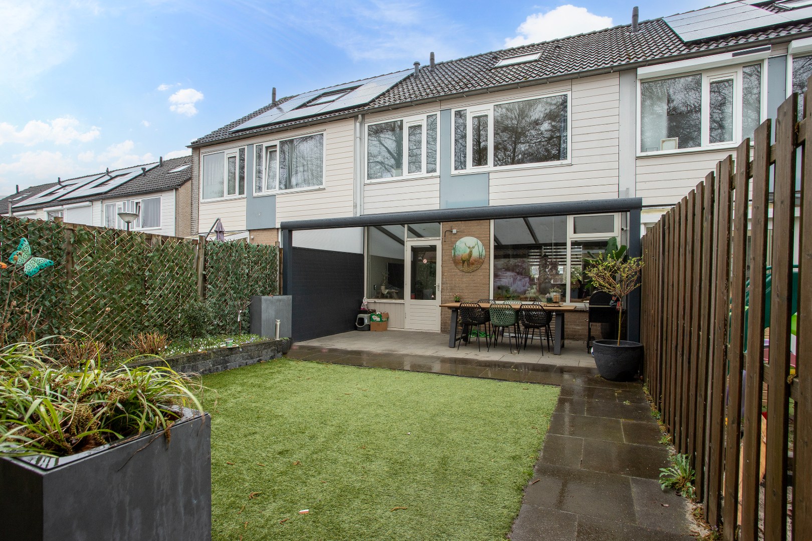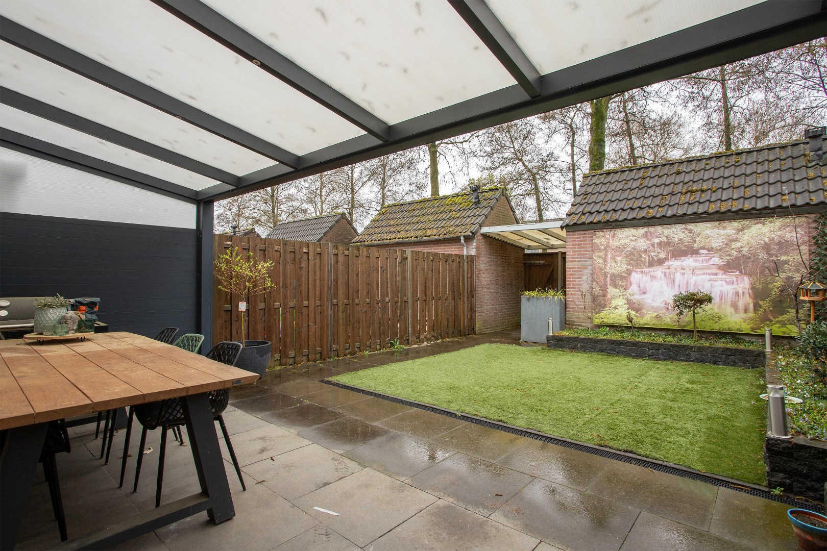 Vanuit de keuken loop je de achtertuin in.