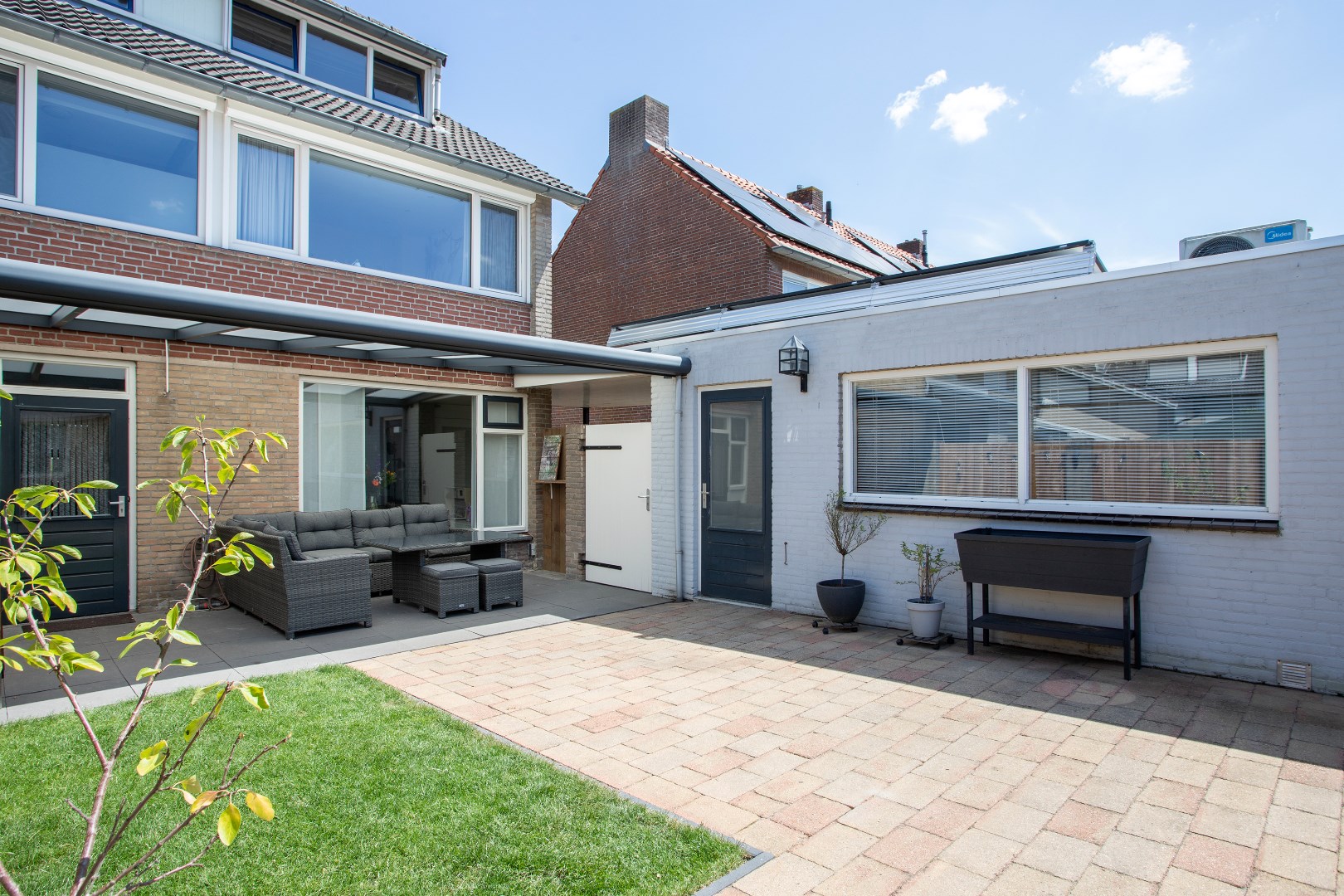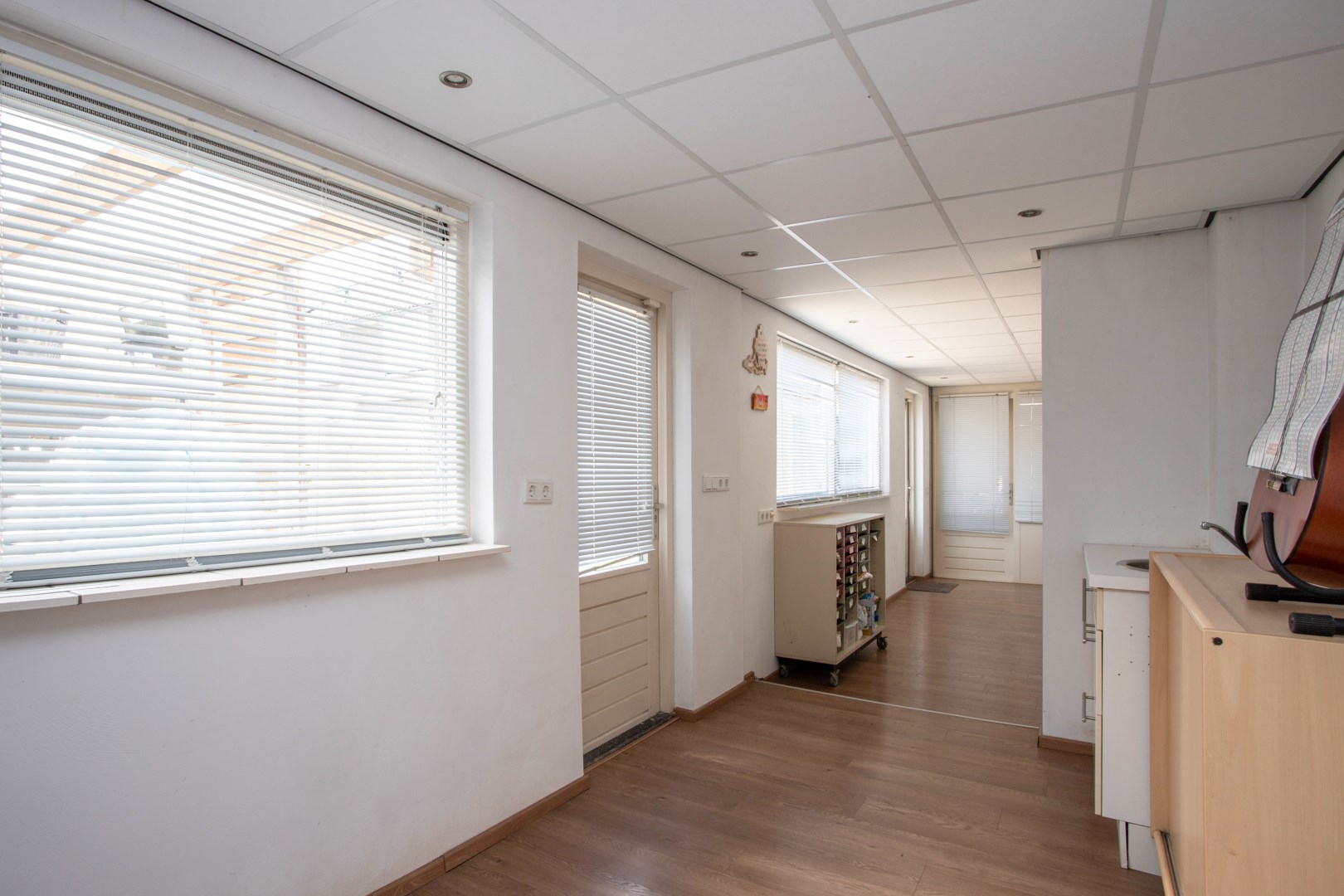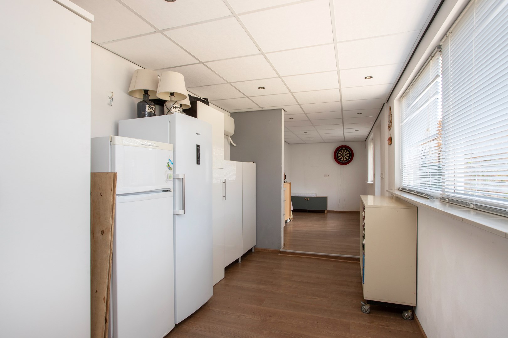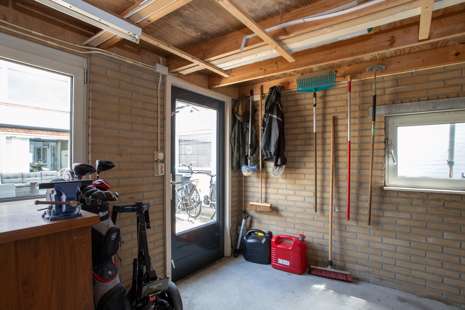 Achterin de tuin bevindt zich een diepe, geïsoleerde garage (met spouwmuren) die momenteel dienst doet als multifunctionele ruimte. De ruimte is voorzien van houten kozijnen, een keukenblokje (voor koffie of thee), verlichting in het plafond en meerdere loopdeuren. Ideaal als werkruimte, atelier, hobbyruimte of kantoor aan huis.