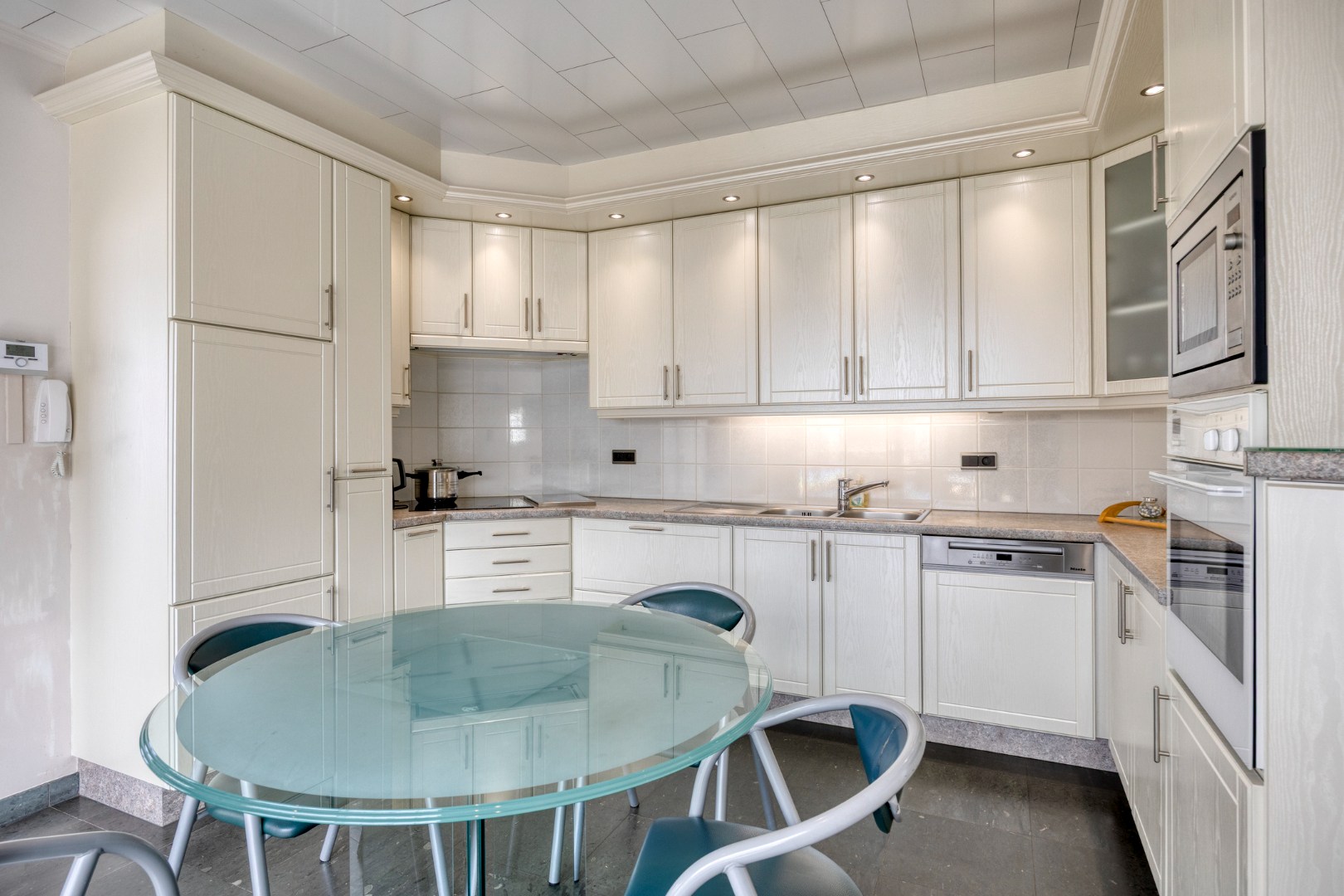 Via de ruime hal met toilet betreedt u de gezellige woonkamer, uitgerust met een sfeervolle gashaard en een karaktervolle schouw in Franse kalksteen. Aansluitend bevindt zich de volledig uitgeruste en goed onderhouden eetkeuken in een U opstelling. Zowel vanuit de keuken als de woonkamer heeft u toegang tot de grote veranda, die uitkijkt op de prachtige tuin.
